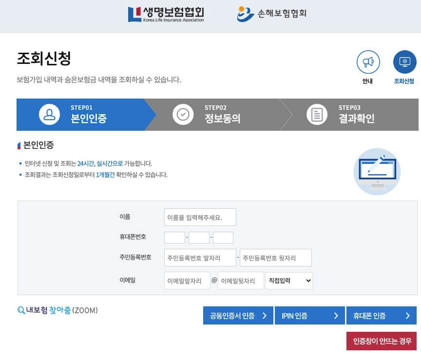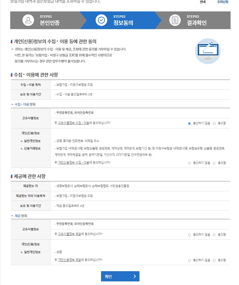 내가 가입한 보험 조회라는 것은 본인이 받을 수 있는 보험금이 있어도